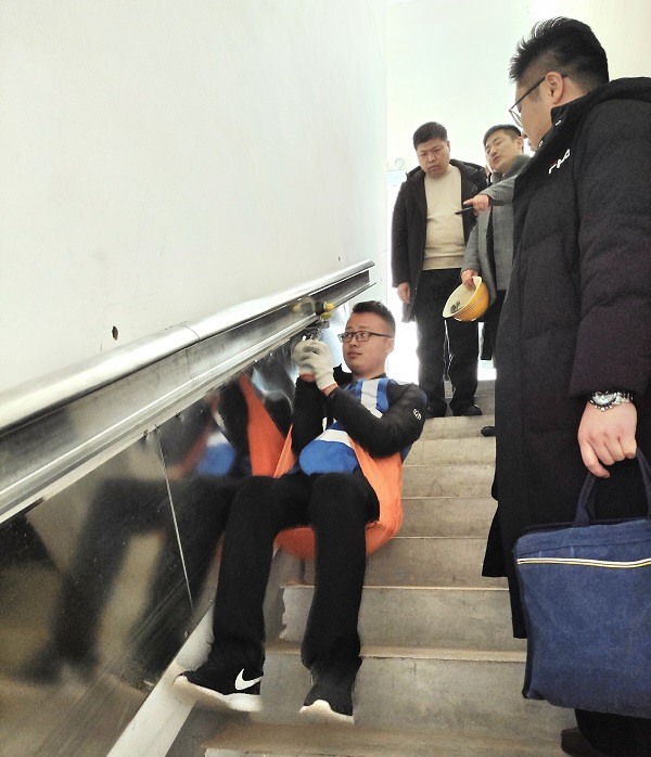 隨后,考察團(tuán)一行親臨西咸新區(qū)灃西新城“高樓應(yīng)急安全逃生智聯(lián)系統(tǒng)”升級(jí)項(xiàng)目施工現(xiàn)場(chǎng)。施工現(xiàn)場(chǎng)正在安裝高樓應(yīng)急專用軌道。