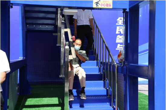 上午,在灃西新城天福和園小區(qū)觀摩現(xiàn)場,通過1:1還原了樓梯逃生通道內(nèi)安裝的逃生設(shè)備狀態(tài)。現(xiàn)場隨機邀請到小區(qū)居民、老人和兒童演示該系統(tǒng)的使用情況。72 歲的張大爺在演示該系統(tǒng)逃生效果后,稱贊道:“這個裝置很好,特別是像我們這些老年人腿疼、腿腳不好的,有火災(zāi)、地震、停電的時候,從高層往下滑,快速安全,速度還可以控制,適合老年人。”