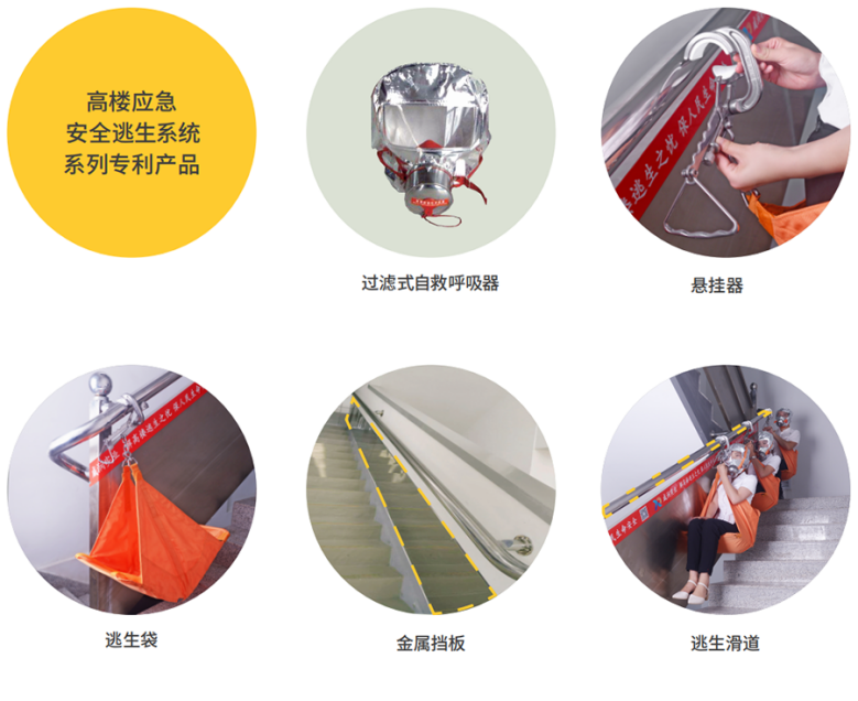 推薦產(chǎn)品:咸潤實業(yè)新一代“高樓應(yīng)急安全逃生系統(tǒng)”配備更為安全的過濾式自救呼吸器,其耐熱防熱輻射,視野開闊,氣密性好,能很好地避免煙霧的吸入。
