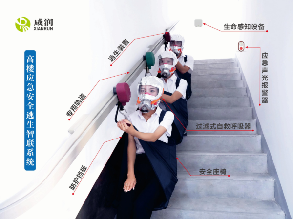 高樓應(yīng)急安全逃生智聯(lián)系統(tǒng)的專用軌道,將消防疏散通道原有樓梯扶手進(jìn)行升級(jí)改造,使其具備“扶手逃生”雙功能,也就是說,在平時(shí),作為樓梯扶手正常使用;當(dāng)發(fā)生緊急情況時(shí),作為火災(zāi)應(yīng)急逃生專用軌道,配合逃生裝置,可實(shí)現(xiàn)百米高層3分鐘快速逃生,革命性定義了樓梯扶手功能。