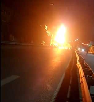 安徽境內(nèi)兩車追尾相撞油罐車泄漏起火 引燃民房已致8死4傷